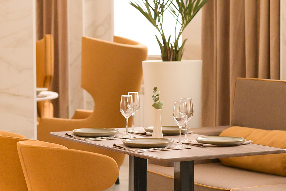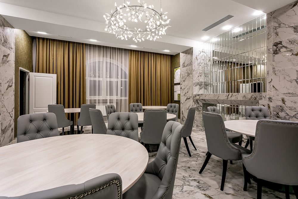 Камерная жемчужина курорта. Небольшой, изысканный, уютный зал для самых душевных событий. «Эстет» - это про близость, стиль и приватность. Идеально для торжества в узком кругу родных и близких.