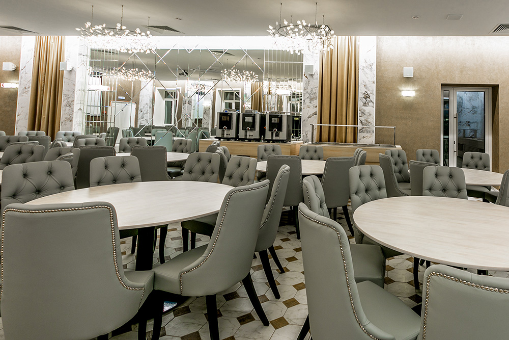 Идеальное место для Вашего торжества. Расположенный на территории курорта в окружении природы, он дарит атмосферу уединения и комфорта. Просторный зал с современным интерьером и профессиональным обслуживанием позволит организовать праздник под ключ: от изысканного меню до оформления и развлекательной программы.