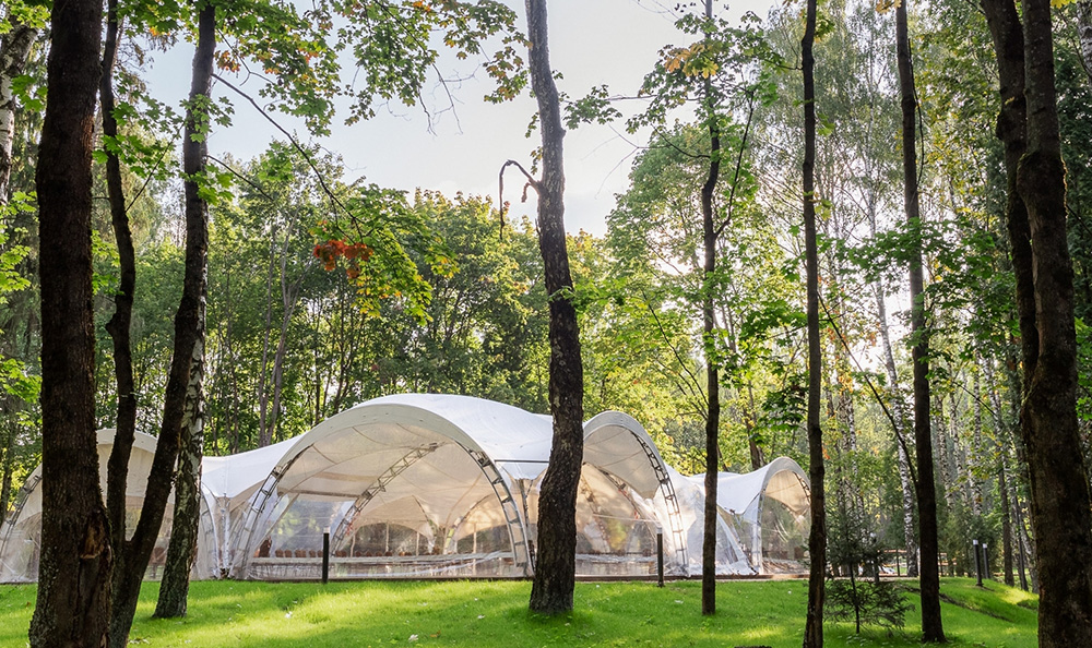 Символ легкости и свободы.В окружении леса, на свежем воздухе, летний шатер становится естественынм продолжением природы. Полупрозрачность конструкции, мягкий свет гирлянд и простор - все создает атмосферу романтики и уюта.